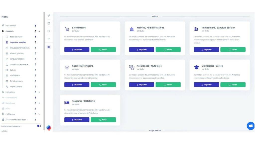 Son principal atout réside dans son accessibilité. En effet, son approche NoCode offre une personnalisation simple et rapide, sans nécessiter de compétences techniques. En parallèle, les fonctionnalités de YeldaAI couvrent un large éventail d’usages :